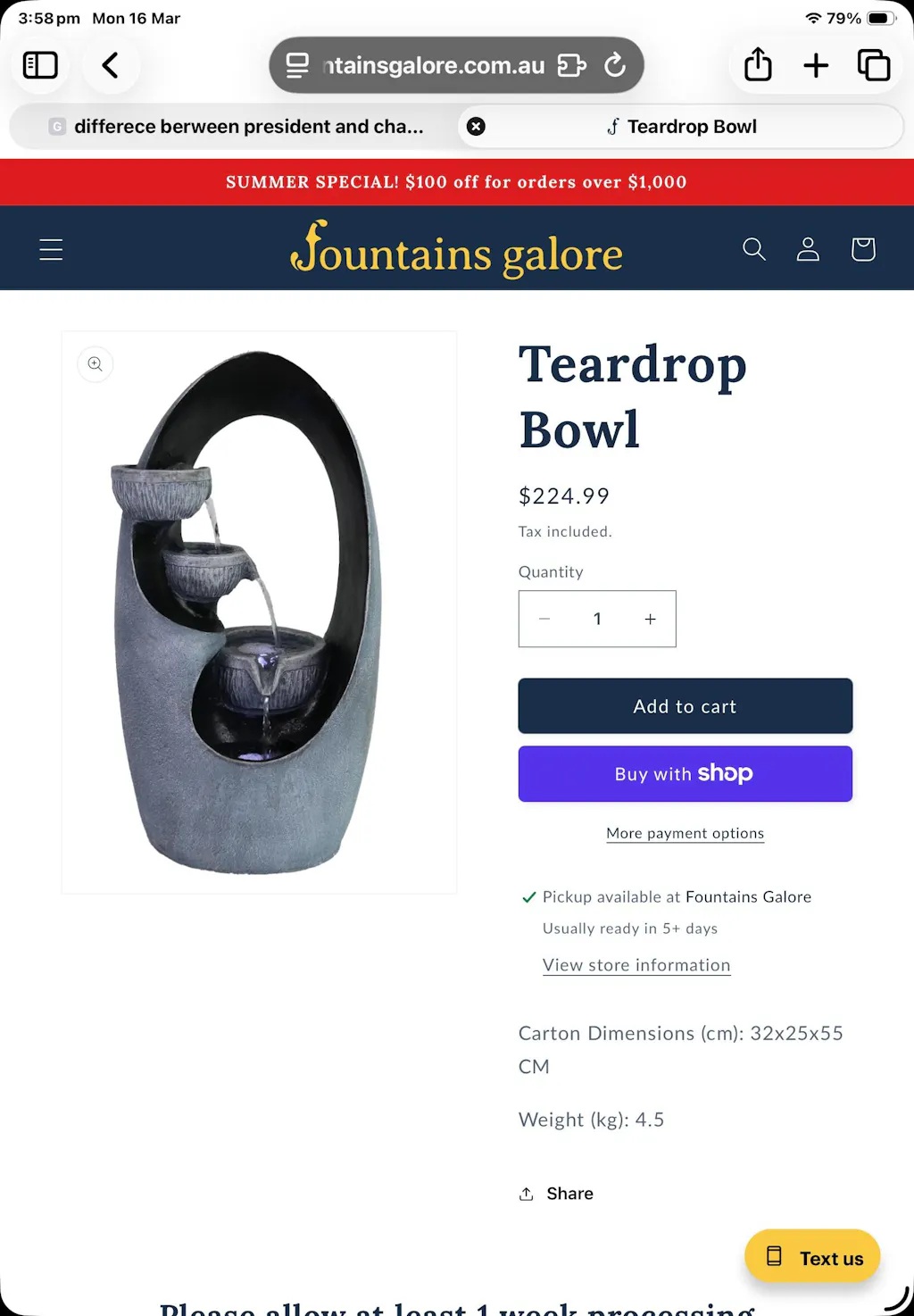 (03) 9317 7924 or info@fountainsgalore.com.au